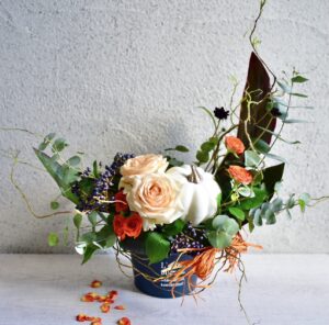 🎃ハロウィン体験レッスンご案内🎃 秋の彩りのハロウィンアレンジ体験を いたしませんか? 白かぼちゃや、 オレンジ・パープルのシックな 大人ハロウィンアレンジです。 器はハロウィン柄の紫のバケツ、コウモリ付きです🦇💜🎃 ぜ… 続きを読む